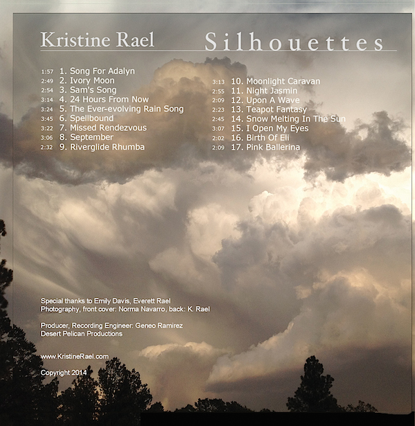 Kristine Rael: SILHOUETTES (2014) Now available Digital downloads at CDBaby and iTunes [Physical] CDs soon at CDBaby Contact: info@kristinerael.com |